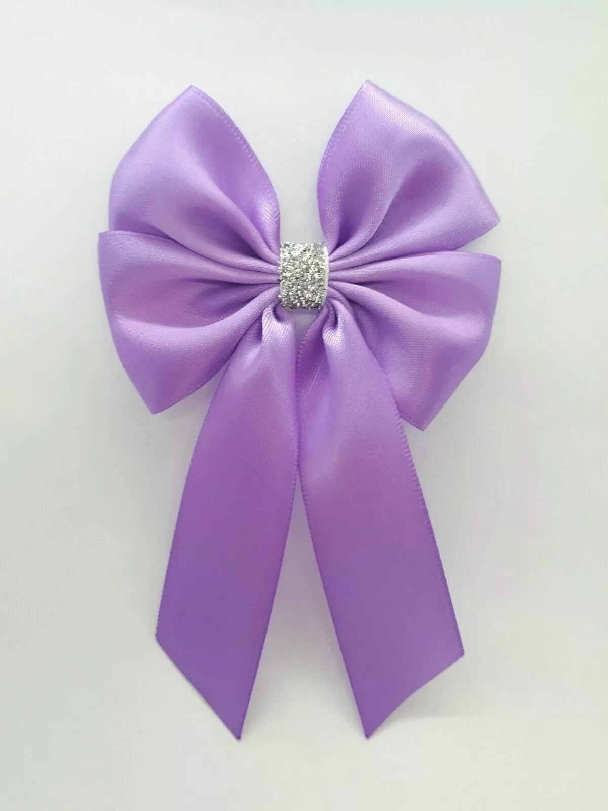 Pack of 3 Plain satin Bows with silver glittert trim center